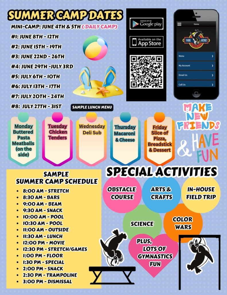 - THIS ONE IS FOR THE PARENTS – No making lunches this summer – LUNCH & Snacks are both included. We are unable to make special dietary exceptions. We will post the lunch menu and if your child doesn’t like something, please have them bring lunch that day.