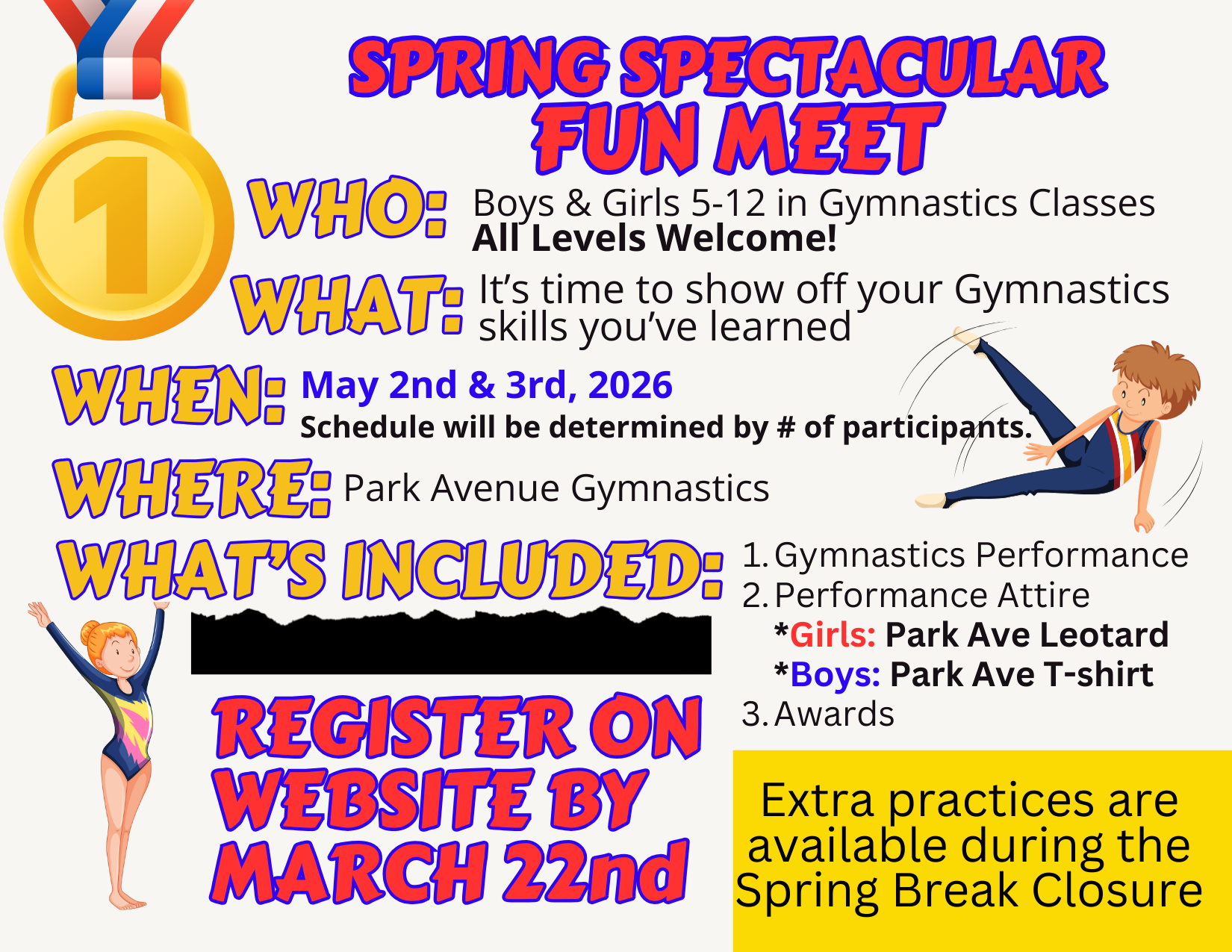 Click below to view the: Spring Spectacular Fun Meet Schedule & Details